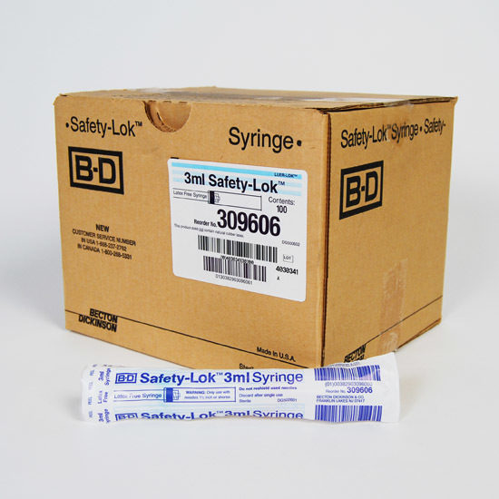 3cc Syringe, No Needle, Safety-Lok, OSHA, Sterile, BD Luer-Lok™, 100/Box