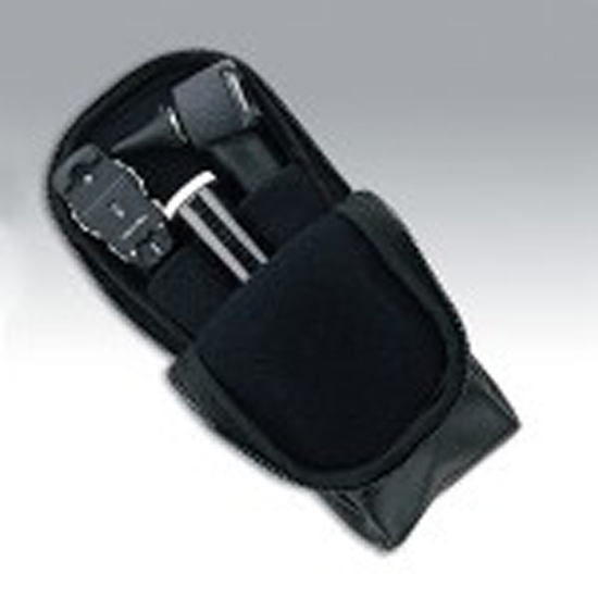2.5V Otoscope also has built in throat illuminator - two in one instrument! Features halogen illumination and fiber optics for a cool light with no reflections or obstructions, plus a rectangular viewing lens for instrumentation under magnification. 2.5V PocketScope handle has a smooth rheostat to control light intensity and features a handy pocket clip.